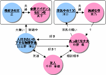 吹野楓(宮崎あおい)は、普通の家庭に育った、普通ではあるが幸せな一人娘。最近、父・洋介(勝野洋)が浮気をしているのではないか?と疑い、それに気付かない鈍感な母・紫乃(毬谷友子)に苛立ちを感じている。